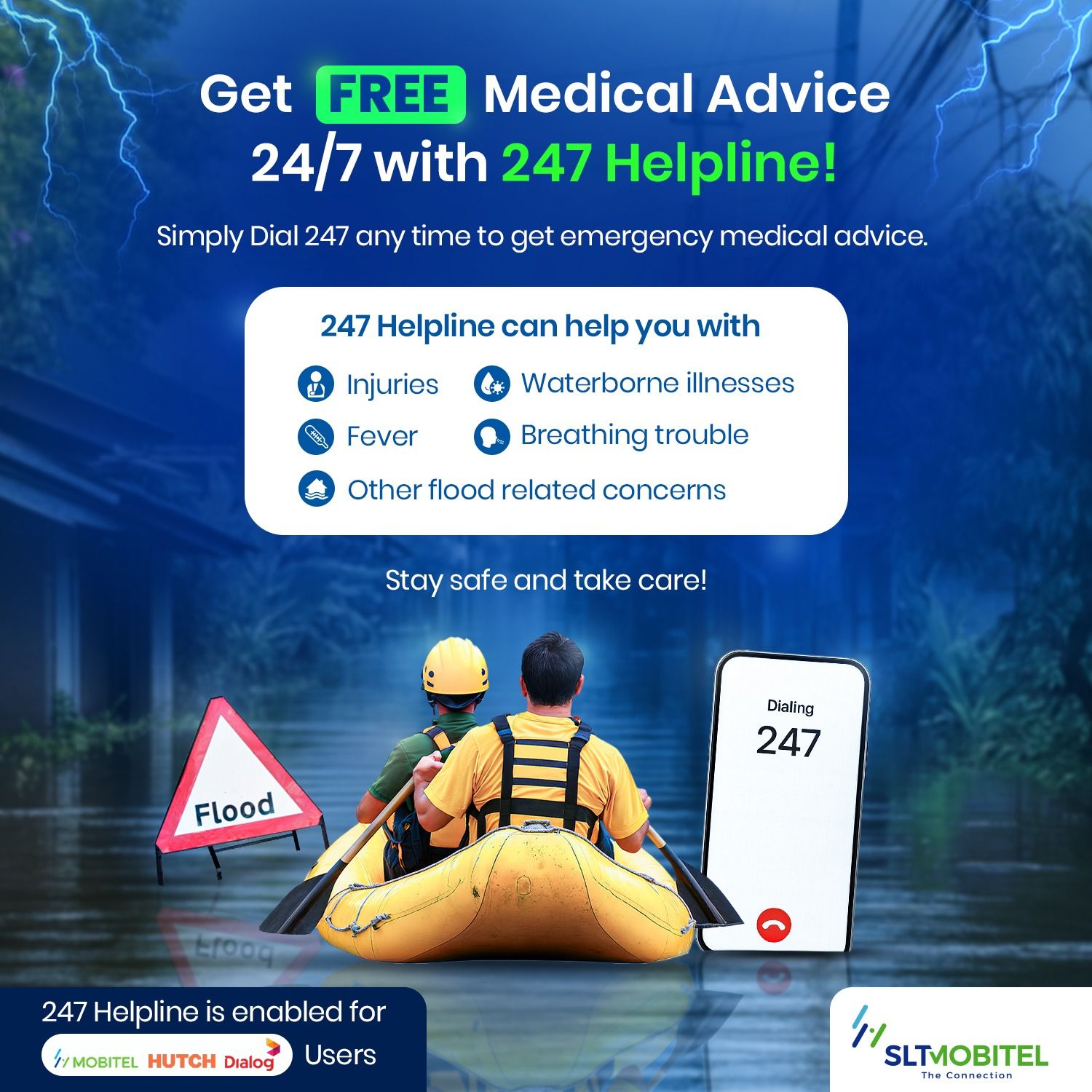 SLT-MOBITEL introduces free '247 Medical Assistance Service' to support communities affected by floods.