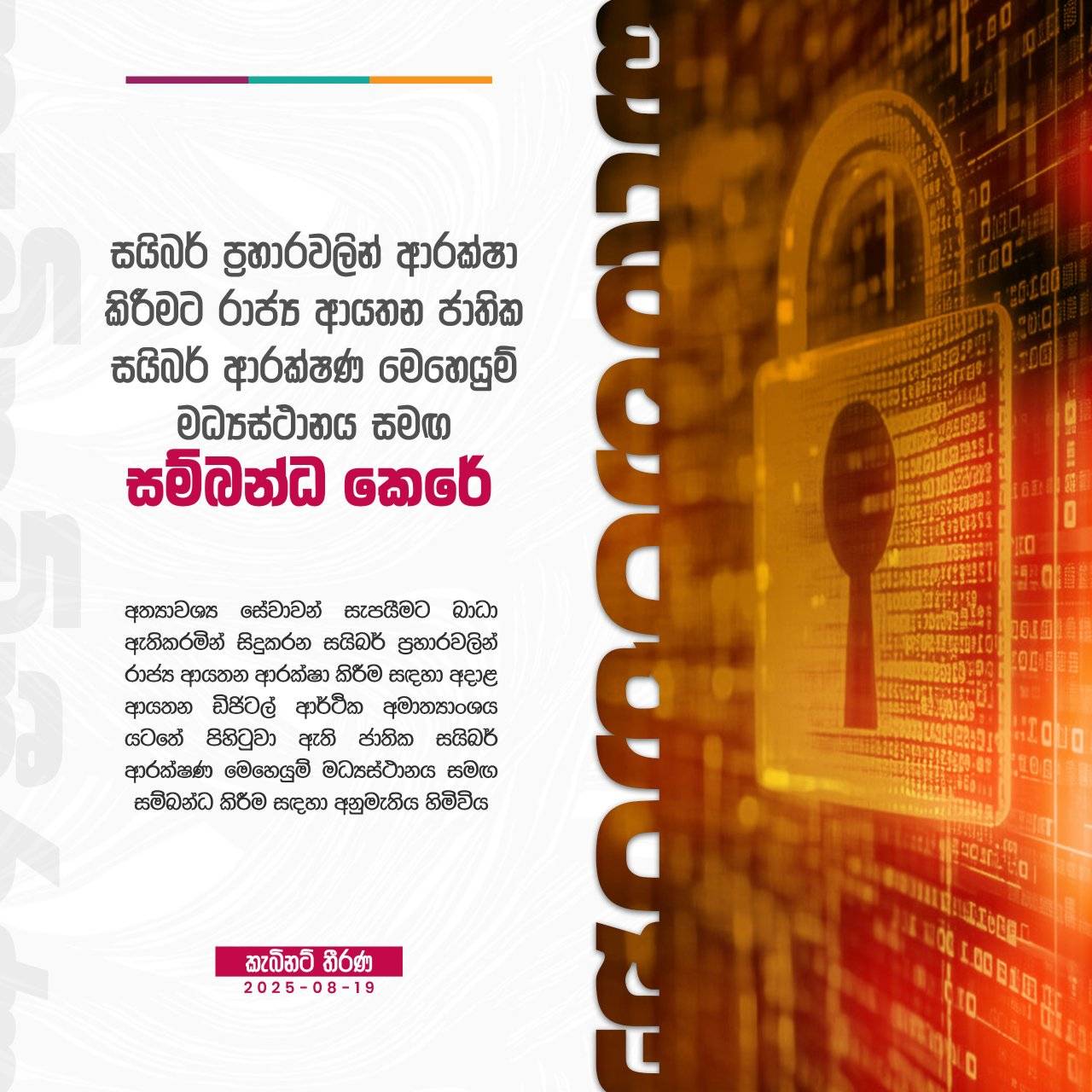 State institutions are linked with the National Cyber Security Operations Center to protect against cyber attacks.2025 අගෝස්තු 19MoT EditorCabinet decisions 2025 |08 | 19