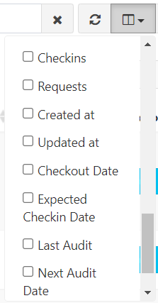 In most of the table-based interfaces in Snipe-IT, you have the option of showing or hiding specific columns, so that columns you don't care as much about don't take up space on your screen, and columns you do care about are easily visible.
