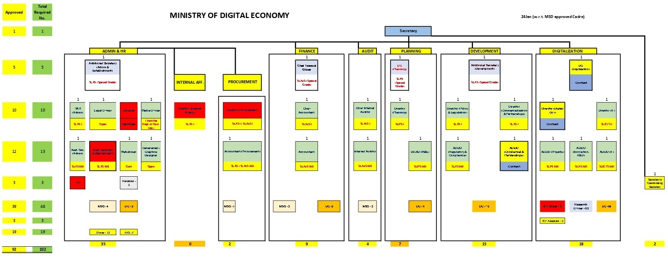 டிஜிட்டல் பொருளாதார விடயங்களுடனும், அரசாங்கத்தால் செயற்படுத்தப்பட்ட தேசிய கொள்கைகளின் அடிப்படையில் திணைக்களங்கள், நியதிச்சட்ட நிறுவனங்கள் மற்றும் அரச கூட்டுத்தாபனங்களின் அதிகாரத்தின் கீழ் வருகின்ற விடயங்களுடனும் தொடர்புபட்ட கொள்கைகளையும் நிகழ்ச்சித் திட்டங்களையும் கருத்திட்டங்களையும் வகுத்தமைத்தல், செயற்படுத்துதல், கண்காணித்தல் மற்றும் மதிப்பிடுதல்.